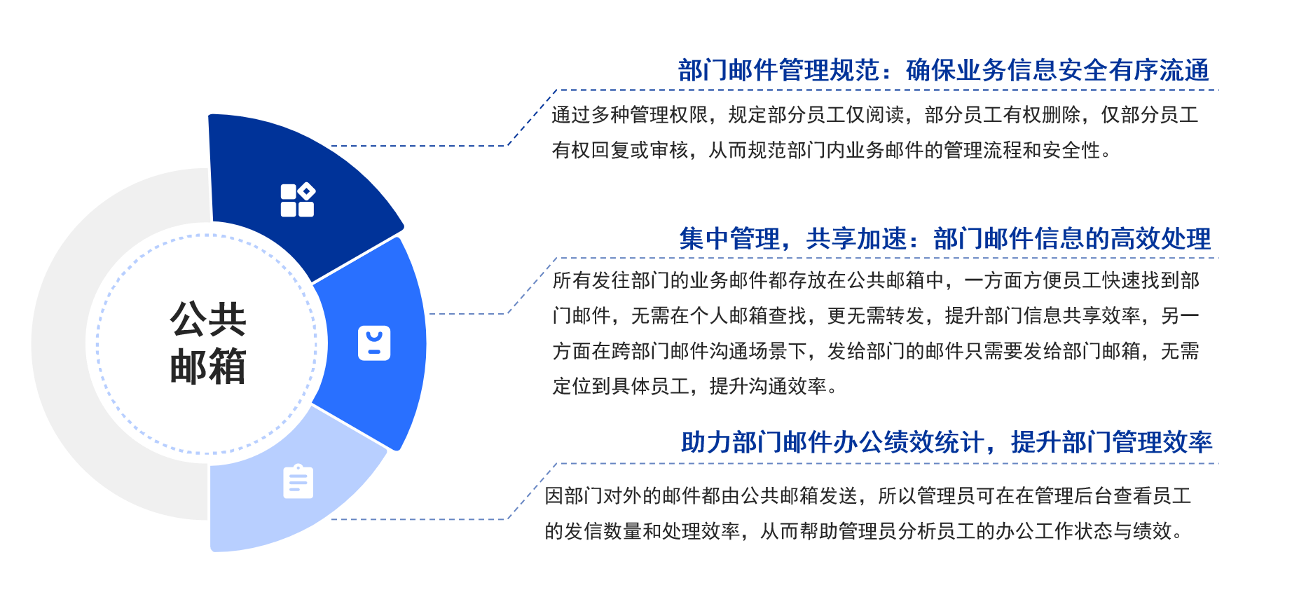 在部門日常工作中,信息傳遞的精準(zhǔn)度、時效性與安全性是保障工作效率和協(xié)作質(zhì)量的核心。隨著業(yè)務(wù)范圍拓展、跨崗聯(lián)動日益頻繁,傳統(tǒng)個人郵箱“點對點”的溝通模式逐漸顯現(xiàn)短板。Coremail公共郵箱從解決信息分散、追溯困難、責(zé)任不清等痛點出發(fā),助力團隊高效協(xié)作。